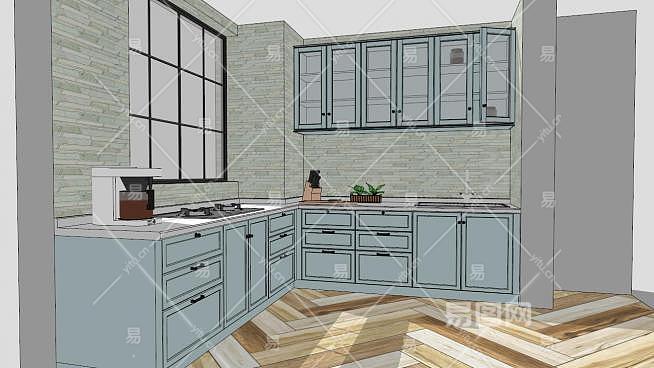 宜家L型内阁厨房橱柜SU模型下载_sketchup草图大师SKP模型