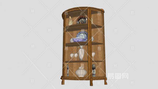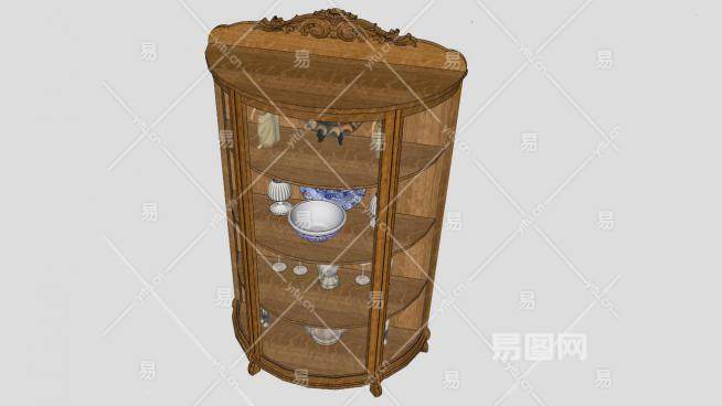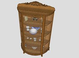 弧形玻璃中国橱柜SU模型下载_sketchup草图大师SKP模型