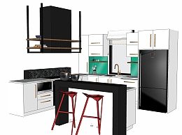 现代厨房柜免费su模型,厨房柜sketchup模型下载