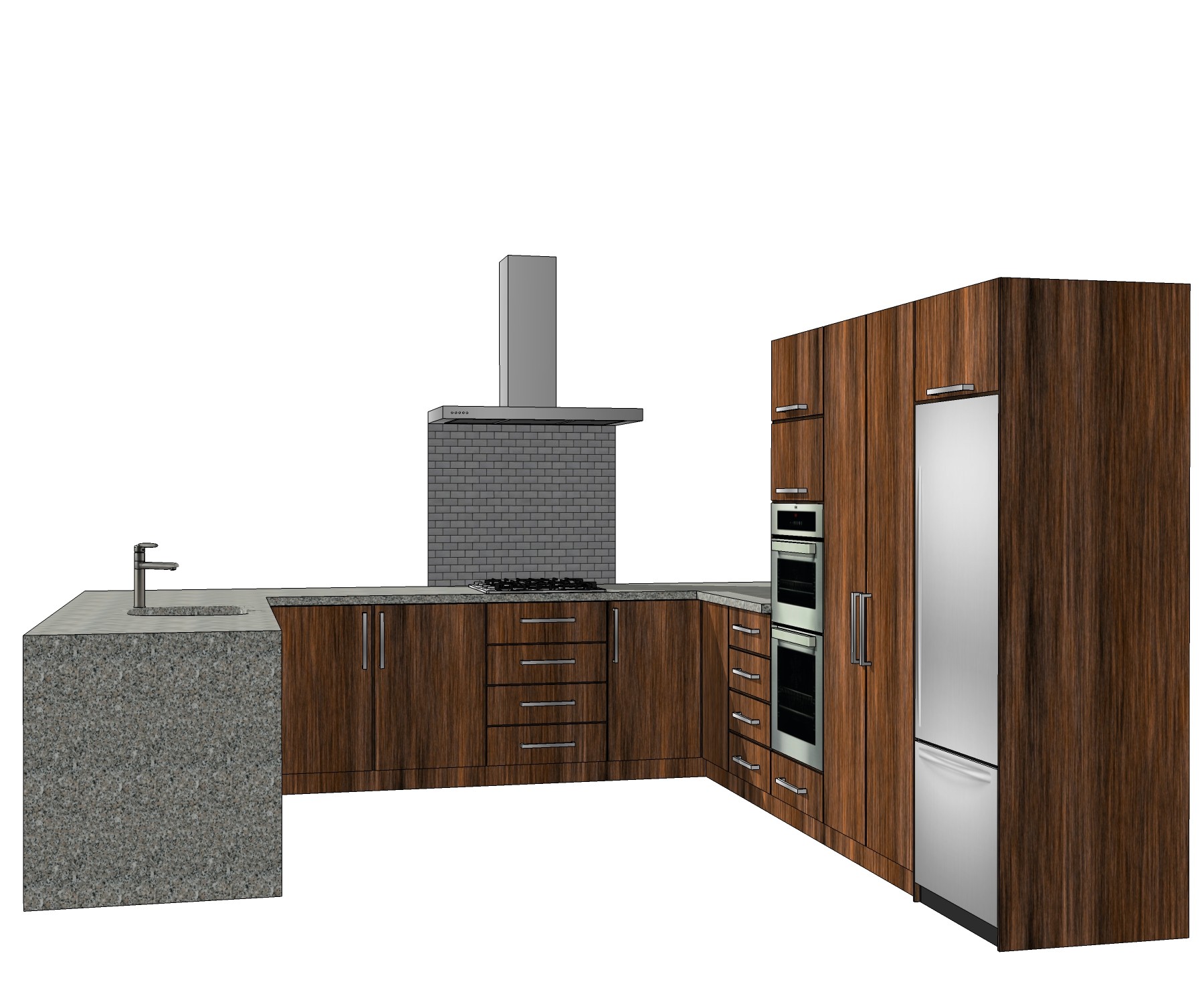 现代橱柜草图大师模型,岛型橱柜sketchup模型下载