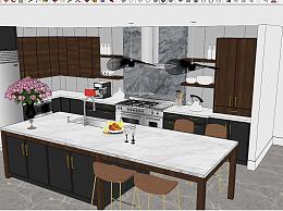13现代北欧低奢开放式厨房吧台吧椅吊灯花艺水果盘su草图模型下载