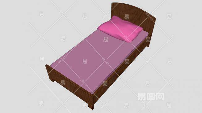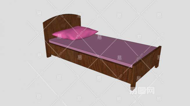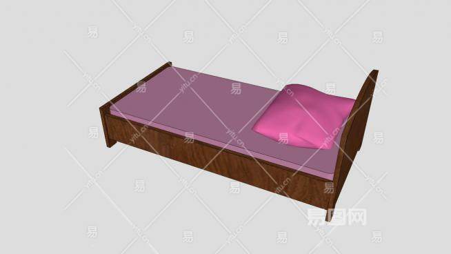 实木卧室单人床SU模型下载_sketchup草图大师SKP模型