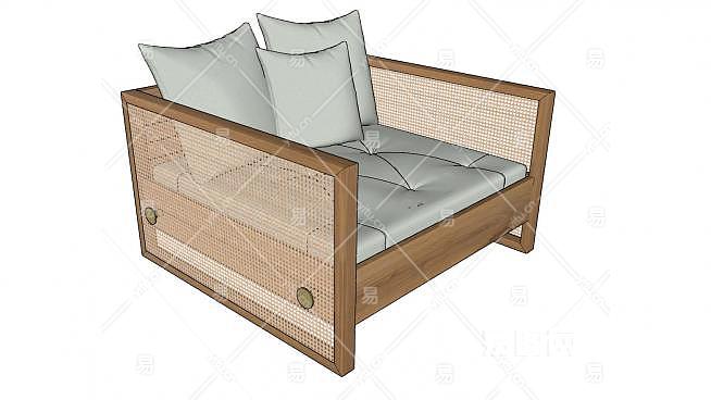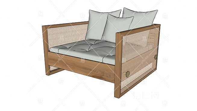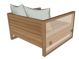 木质单人沙发椅SU模型下载_sketchup草图大师SKP模型