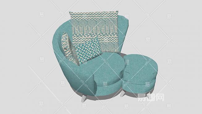 地中海风格单人沙发沙发凳SU模型下载_sketchup草图大师SKP模型