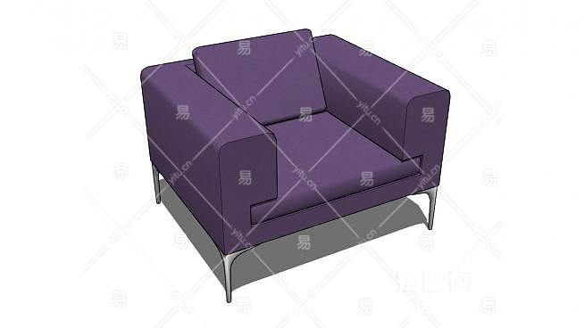 紫色沙发软座单沙发SU模型下载_sketchup草图大师SKP模型