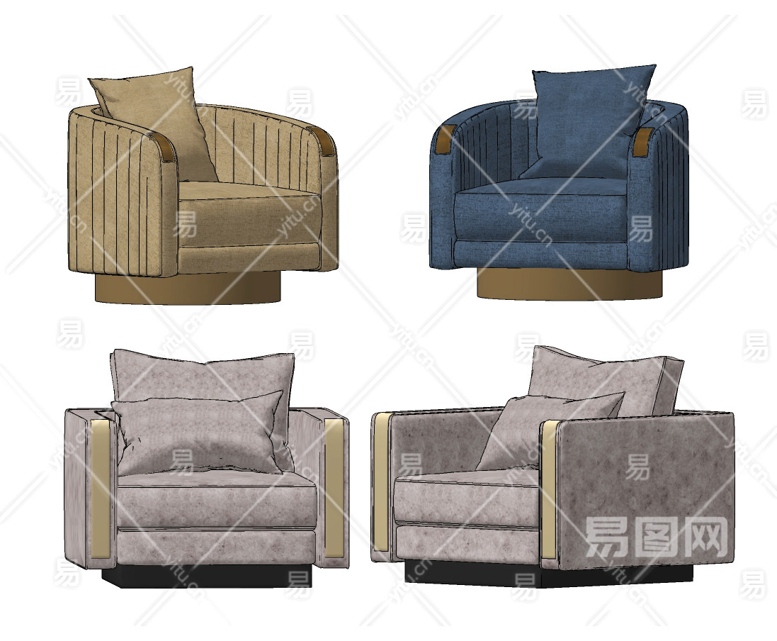 artemest 现代轻奢单人沙发组合su草图模型下载