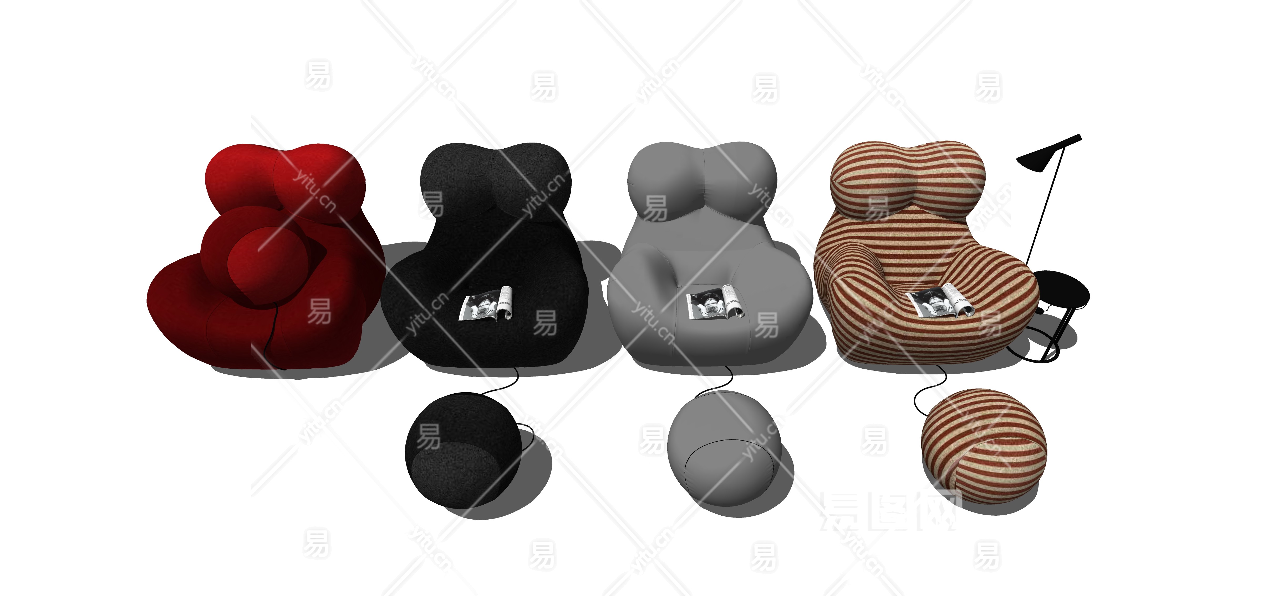 121 懒人沙发 现代单人沙发 休闲沙发 脚踏 躺椅沙发su草图模型下载