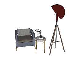 75现代单人沙发圆几落地灯组合 单人椅 休闲单人沙发 花卉 摆件 陶瓶su草图模型下载