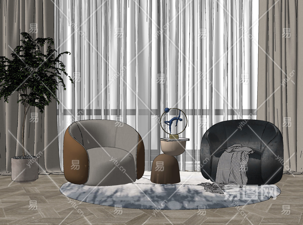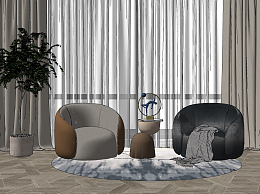 现代布艺单人沙发su草图模型下载