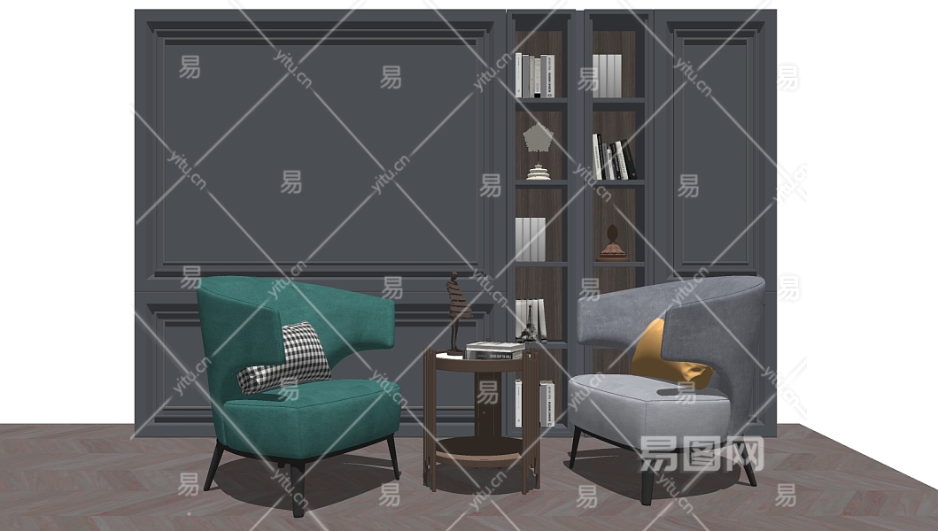 • 现代书房SU模型下载