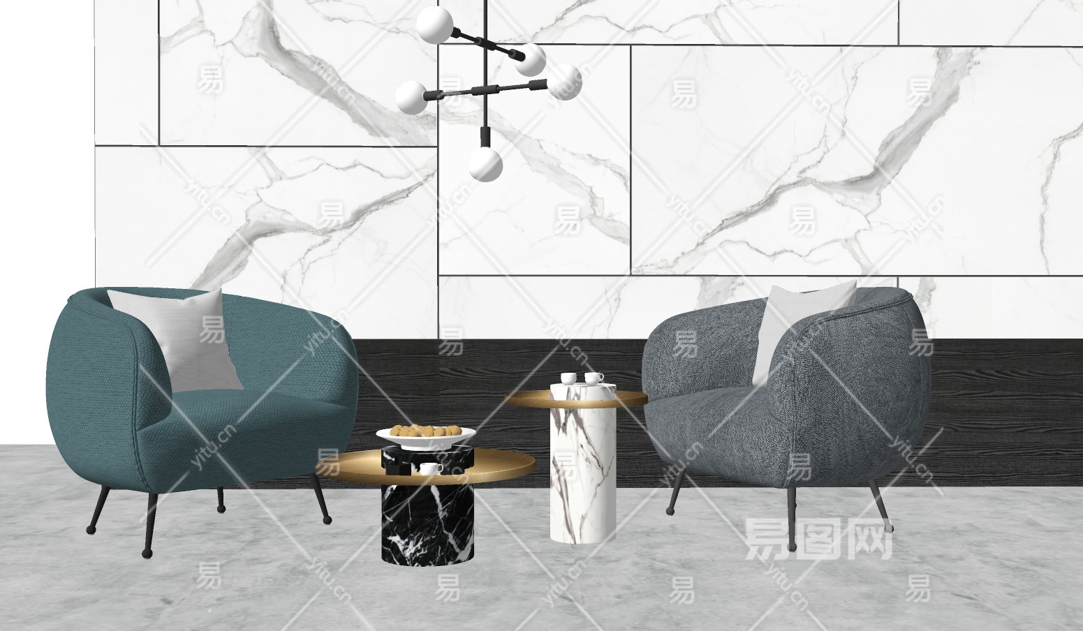 83现代布艺单人沙发 现代单人休闲沙发茶几组合 休闲椅 休闲沙发su草图模型下载