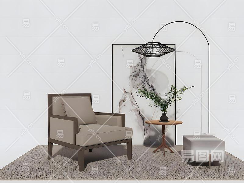 新中式单人沙发