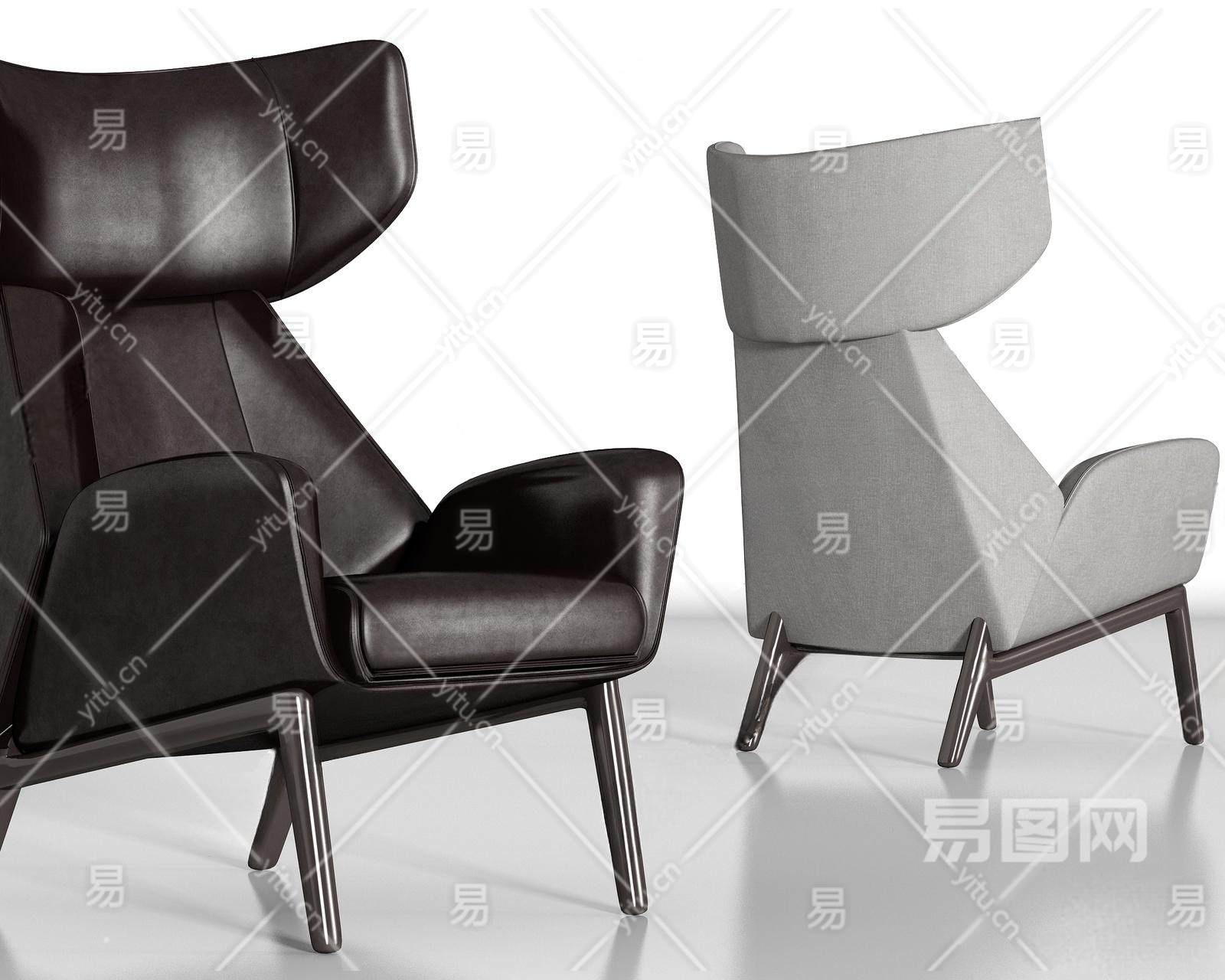 现代金属皮革单人沙发组合