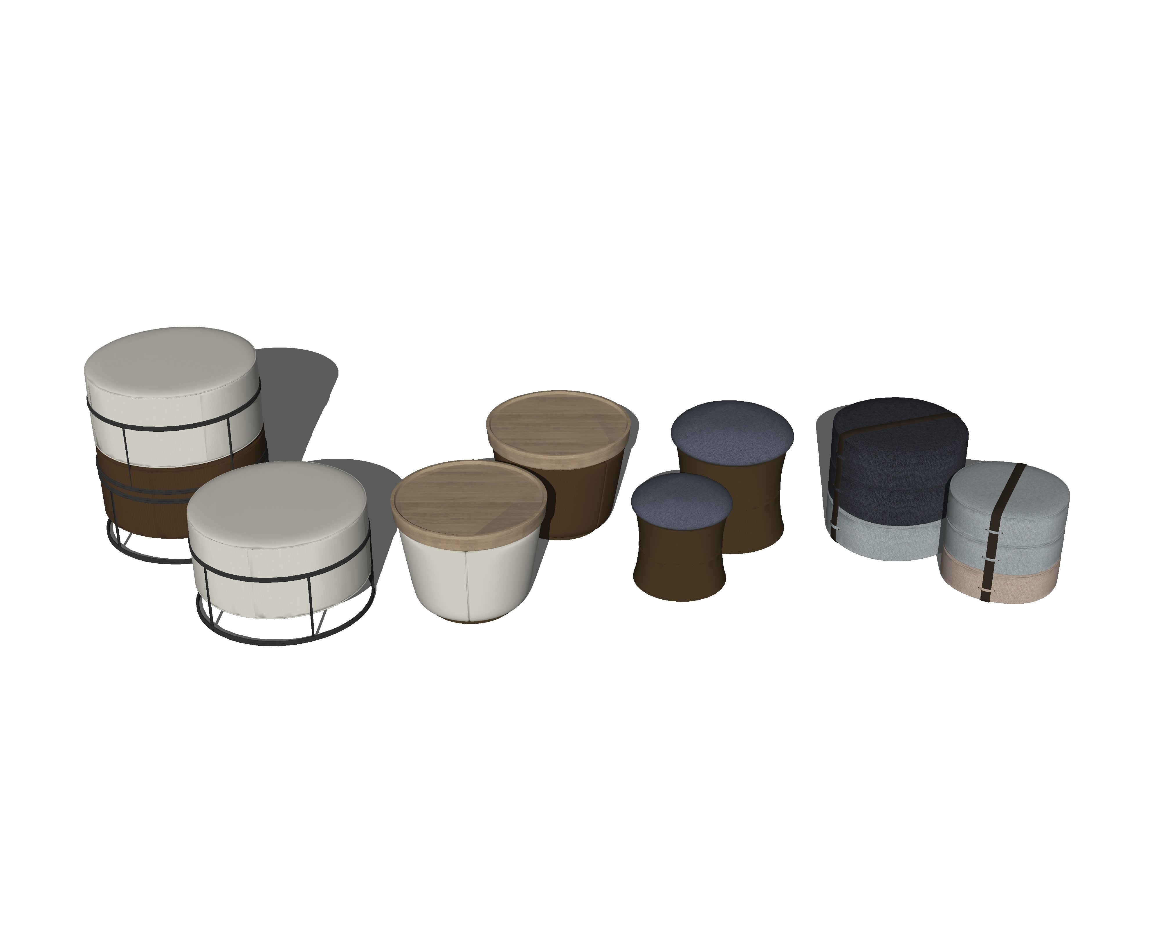 现代矮凳沙发凳组合草图大师模型,沙发凳sketchup模型下载