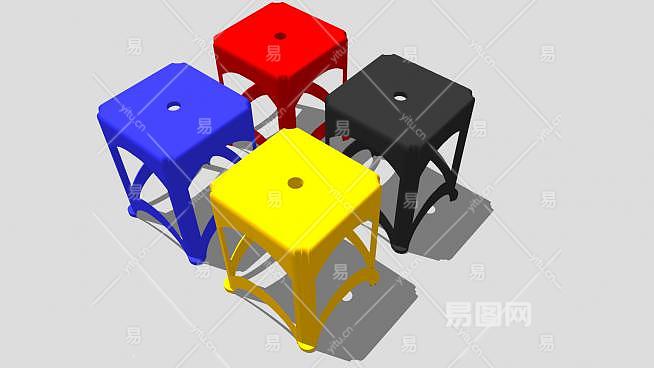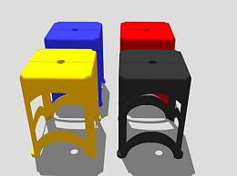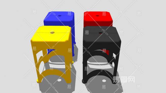 四种颜色塑料凳SU模型下载_sketchup草图大师SKP模型