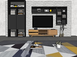 北欧电视柜背景墙组合su模型,柜子草图大师模型下载