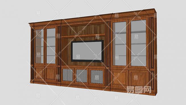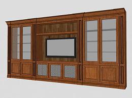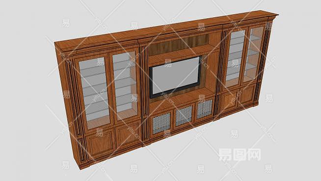 美式实木复古电视柜SU模型下载_sketchup草图大师SKP模型