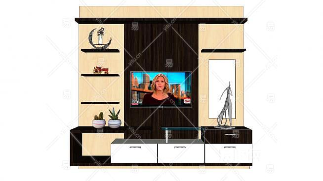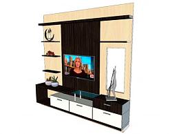 电视背景墙电视柜工艺品陈设品SU模型下载_sketchup草图大师SKP模型
