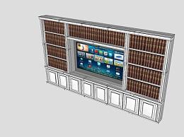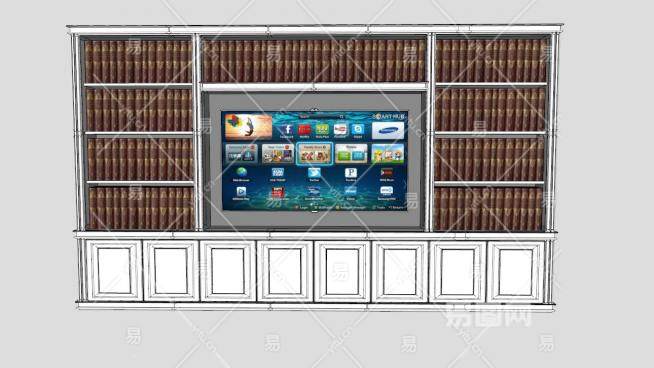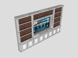 整面墙白色电视柜SU模型下载_sketchup草图大师SKP模型