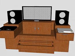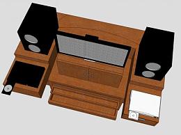 棕色实木客厅电视柜SU模型下载_sketchup草图大师SKP模型
