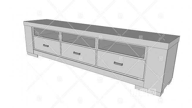 白色简欧地柜式电视柜SU模型下载_sketchup草图大师SKP模型