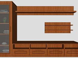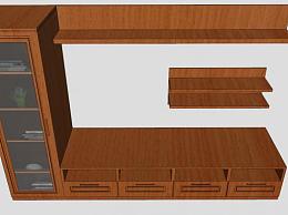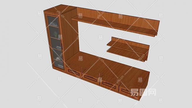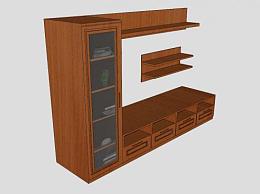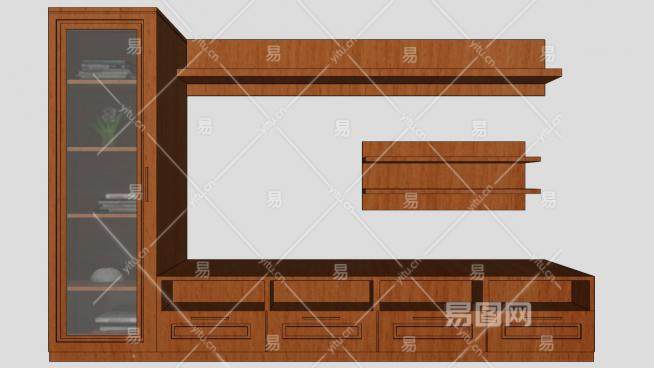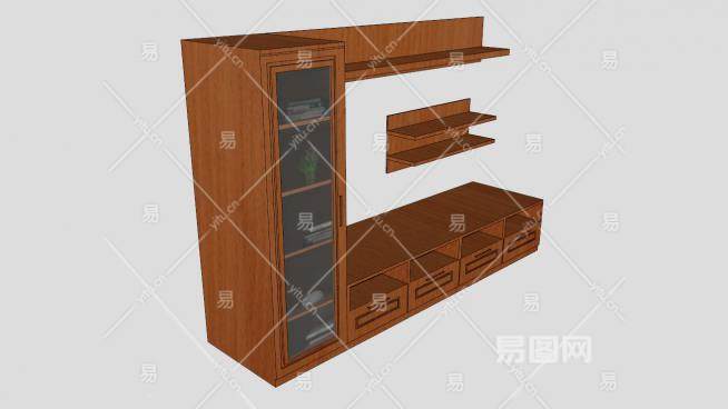 棕色实木电视柜带橱窗SU模型下载_sketchup草图大师SKP模型