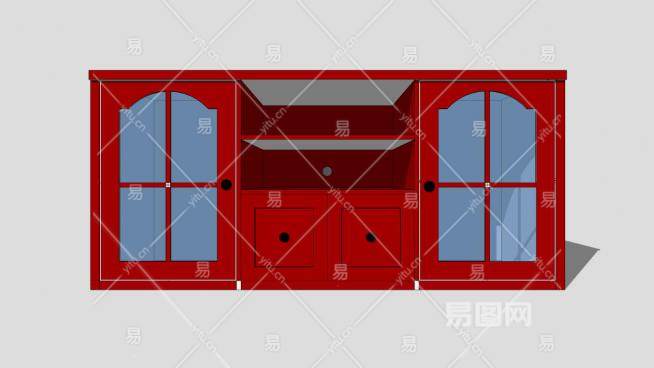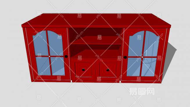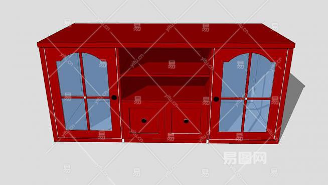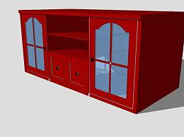 红色玻璃电视柜SU模型下载_sketchup草图大师SKP模型