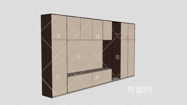 整面墙电视柜SU模型下载_sketchup草图大师SKP模型