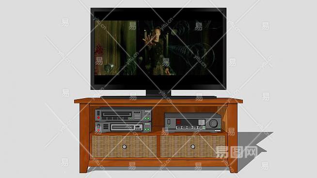 木质的电视柜SU模型下载_sketchup草图大师SKP模型
