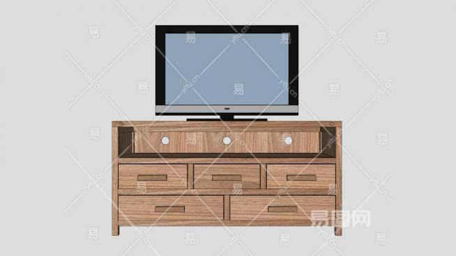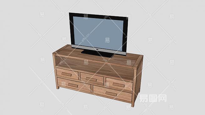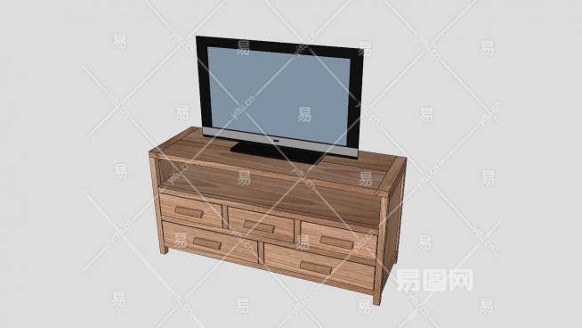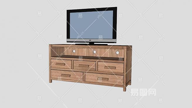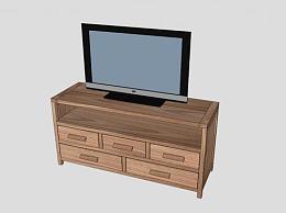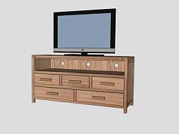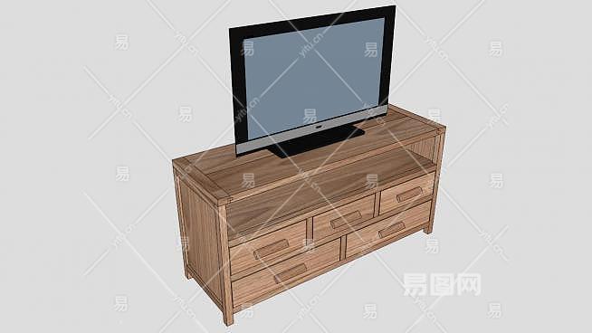 木料电视柜SU模型下载_sketchup草图大师SKP模型