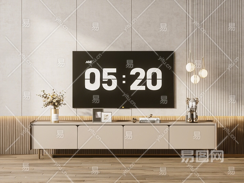现代电视柜组合 摆件吊灯组合 木材 地柜式