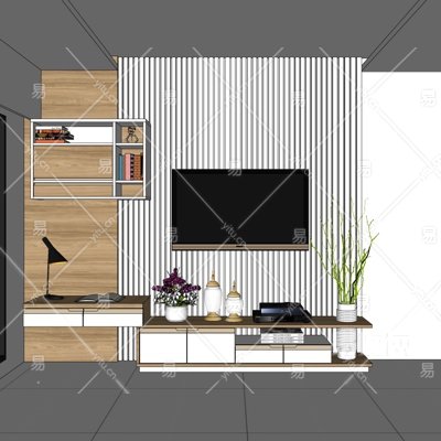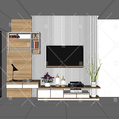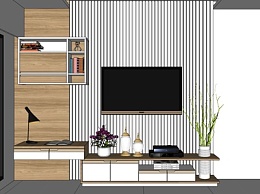 现代实木电视柜壁柜su模型
