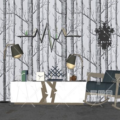 北欧休闲椅电视柜su模型