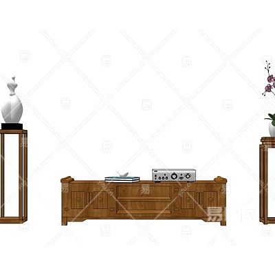 现代实木电视柜su模型