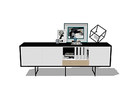 现代简约电视柜摆件组合草图大师模型,电视柜sketchup模型