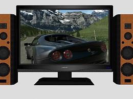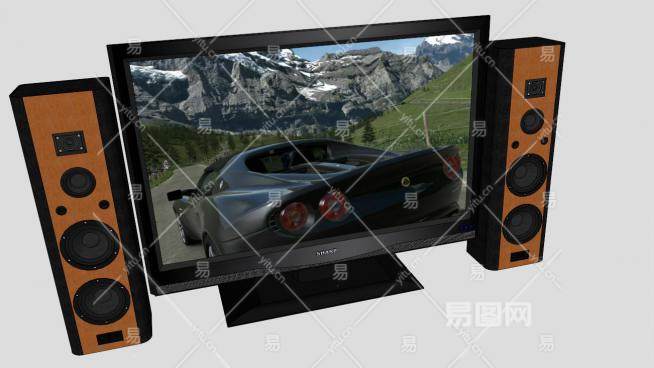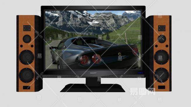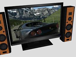 夏普SHARP黑色液晶电视和音响SU模型下载_sketchup草图大师SKP模型