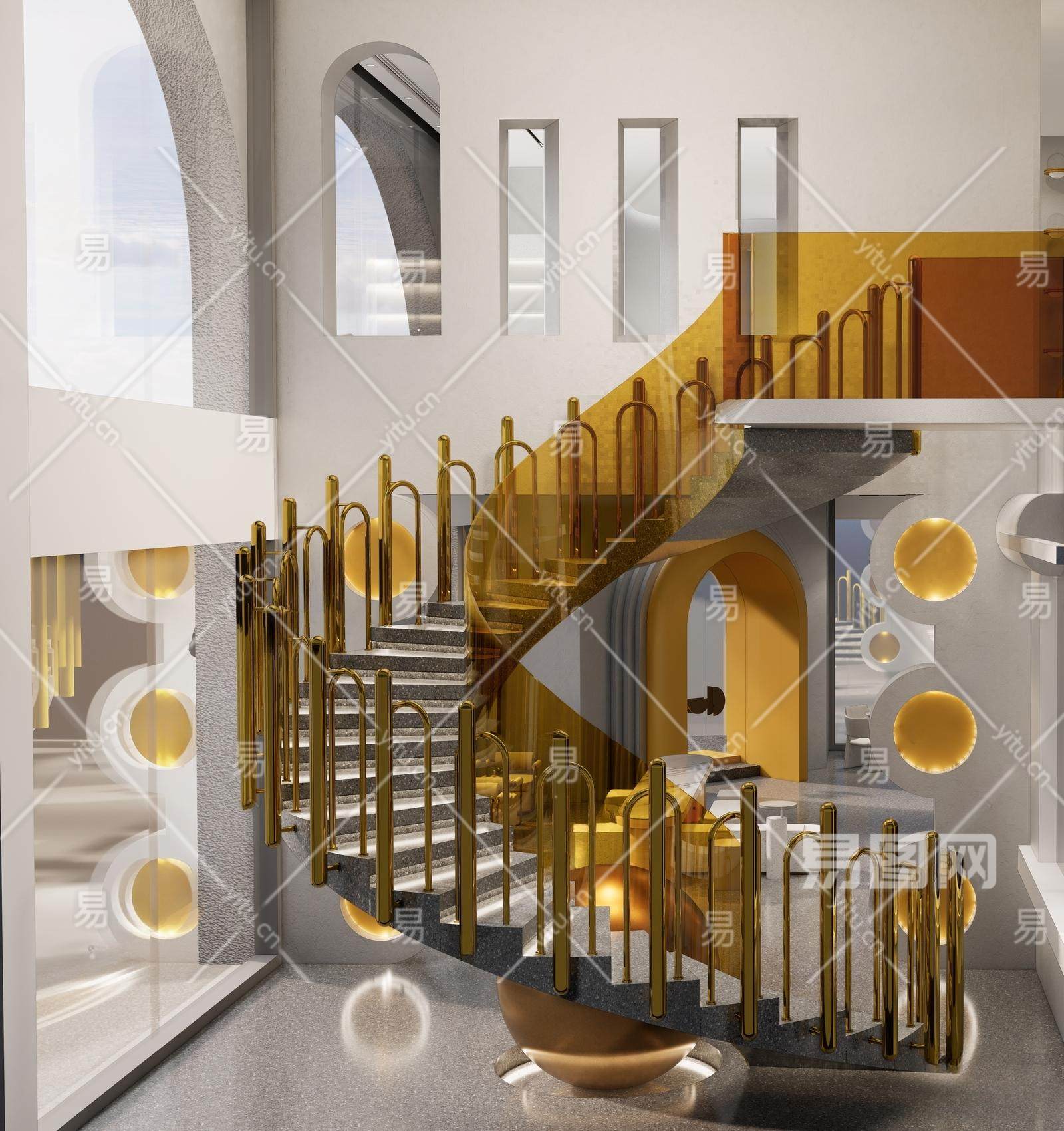 现代旋转楼梯间 艺术楼梯