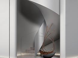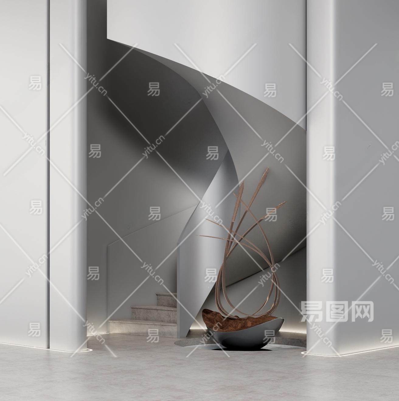 现代极简钢板旋转楼梯间 装饰艺术雕塑