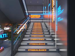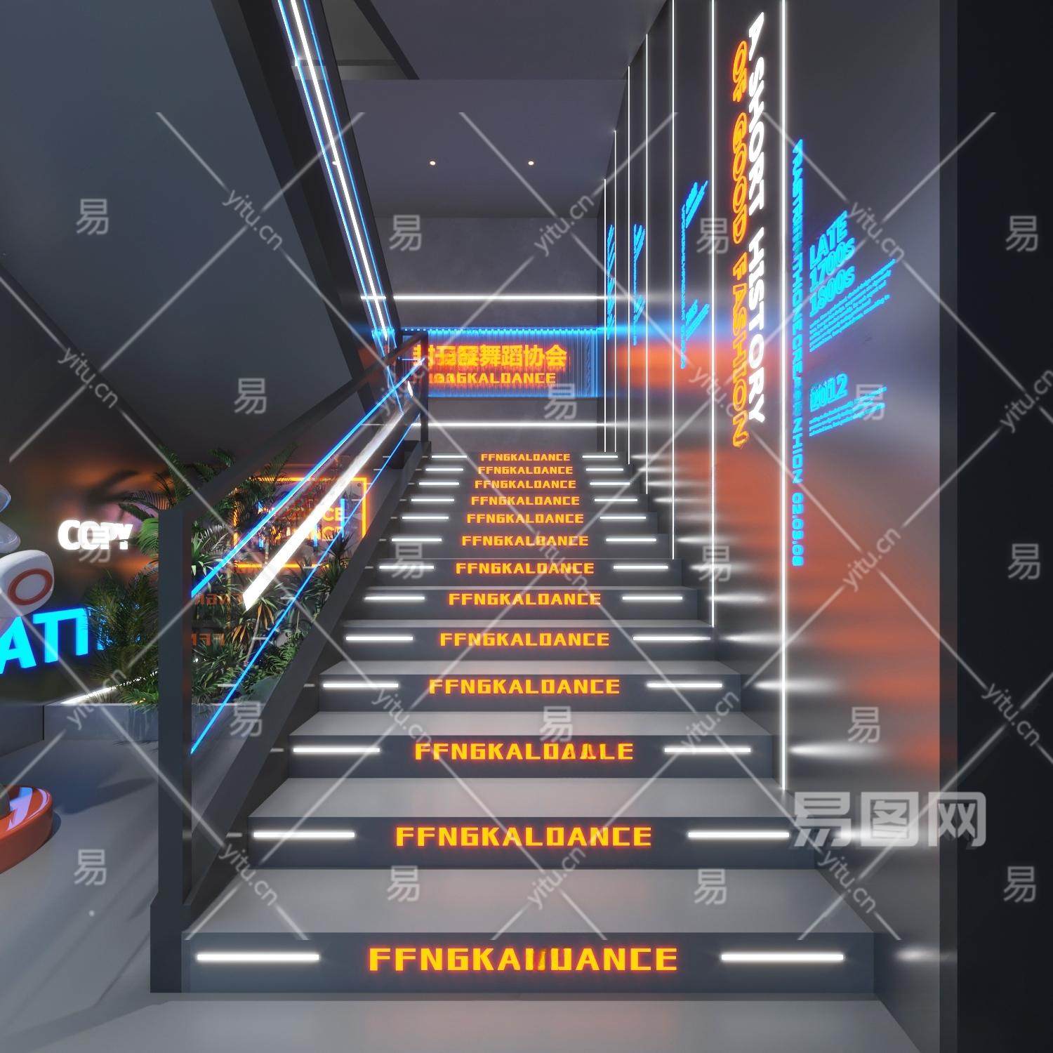 现代楼梯间 培训学校楼梯间 科技风楼梯间 发光字 舞蹈培训机构楼梯间