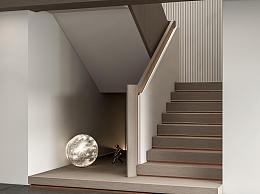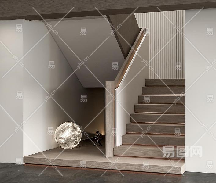 现代楼梯间 扶手楼梯 转角楼梯 月球灯