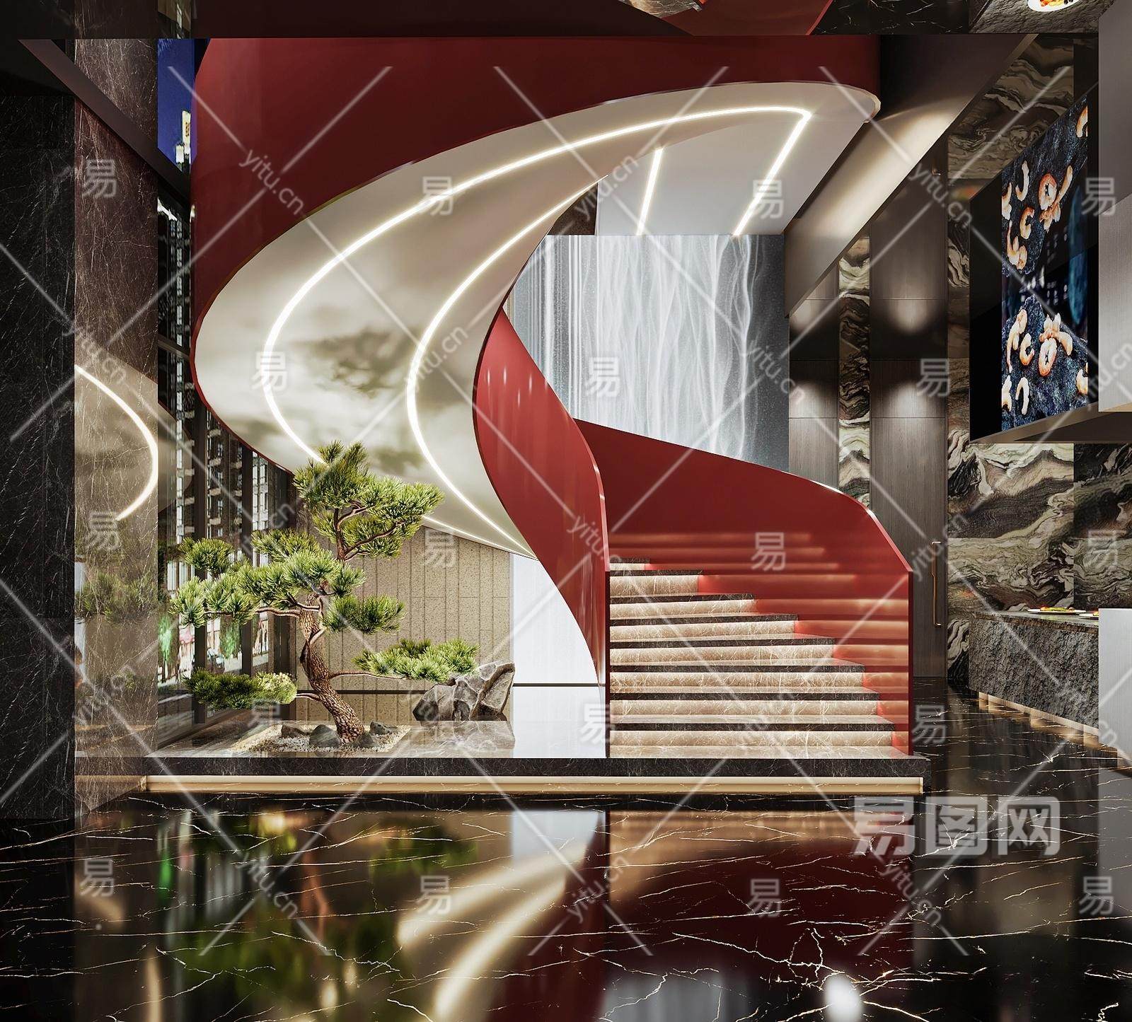 现代楼梯间 旋转楼梯 踏步