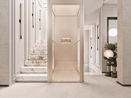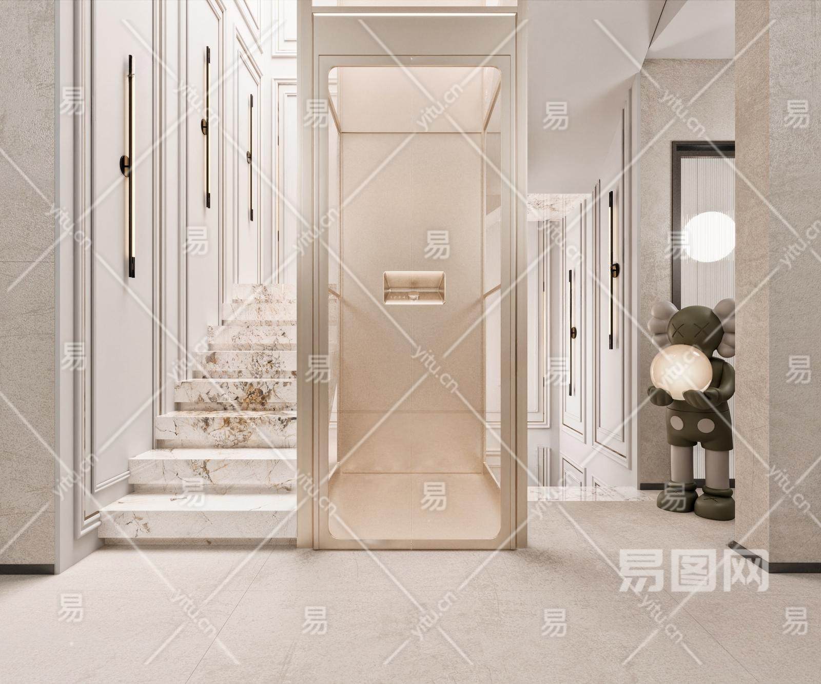 现代楼梯间 电梯厅 电梯 壁灯 雕塑