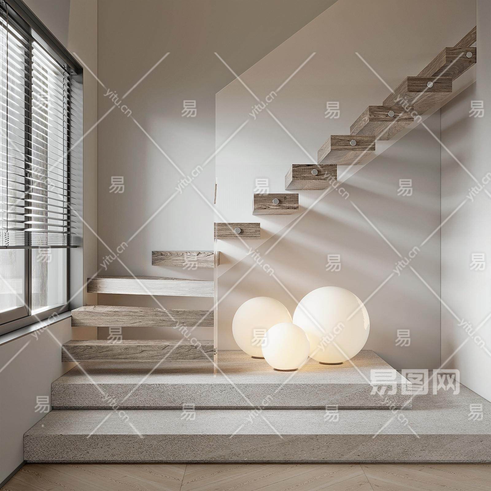 现代楼梯间 踏步 球形灯