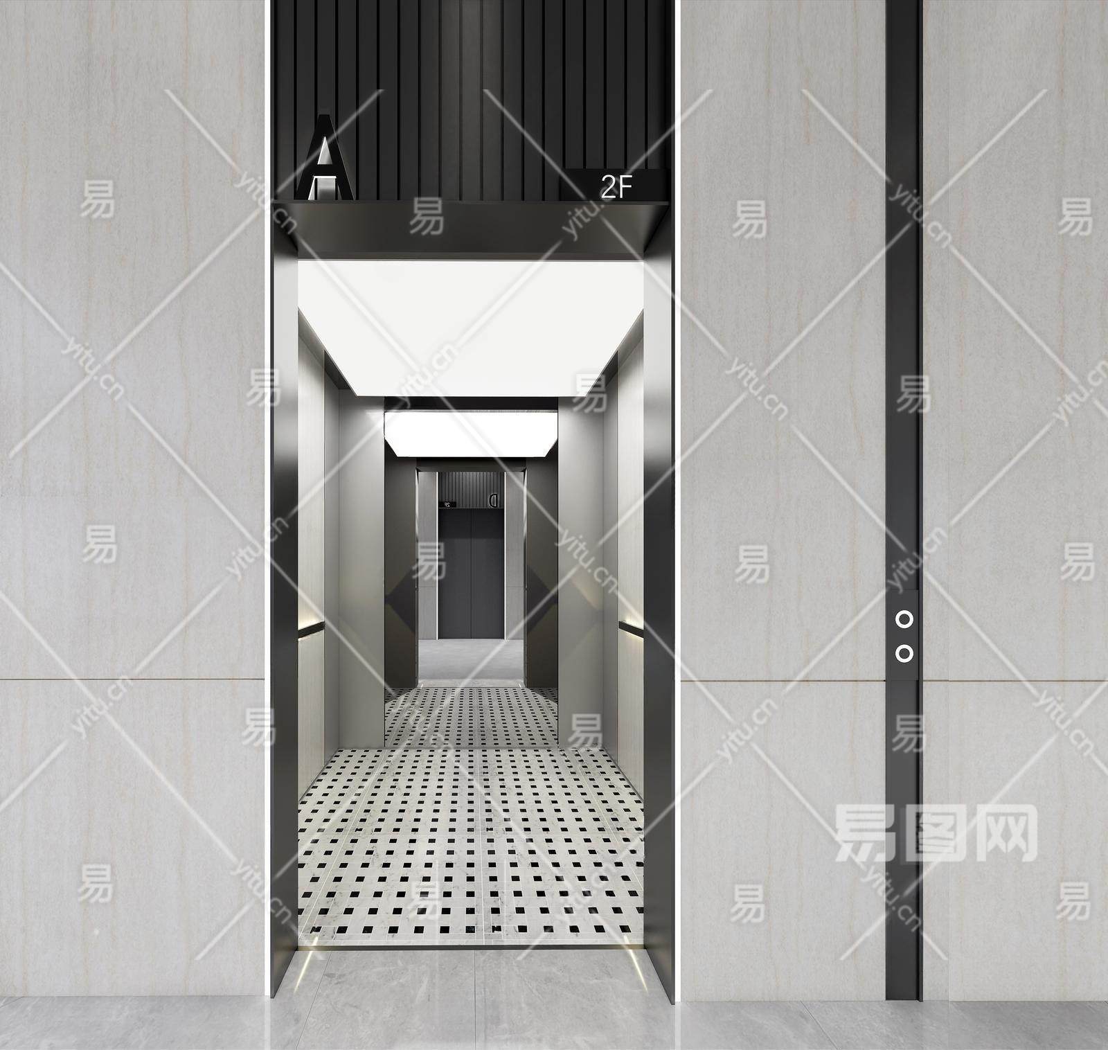 现代电梯厅 电梯轿厢