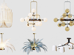 现代轻奢羽毛吊灯su草图模型下载