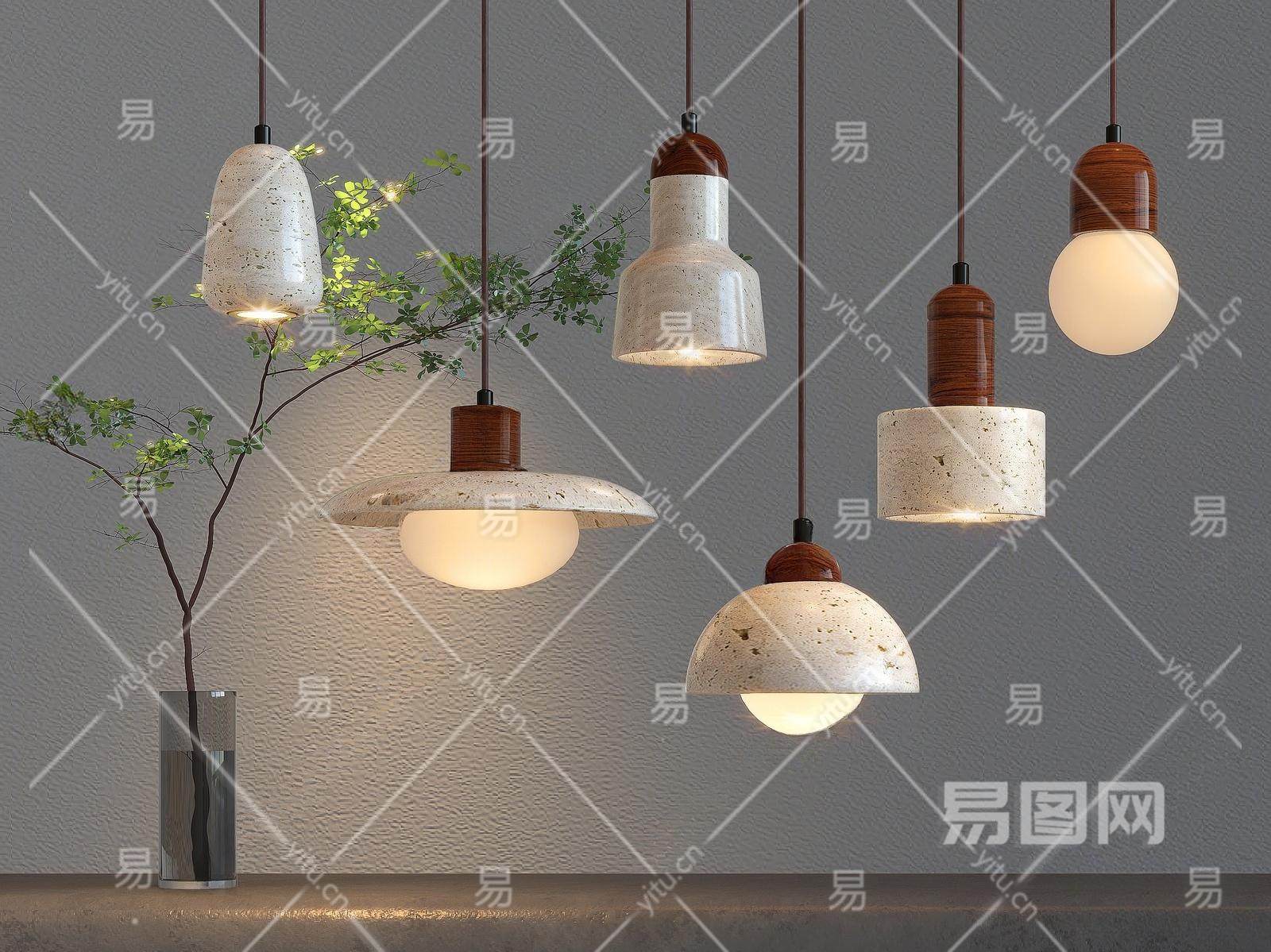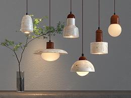 07侘寂吊灯组合,灯罩吊灯,灯泡吊灯SU模型
