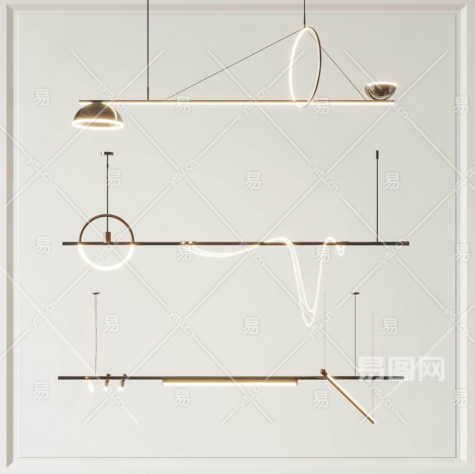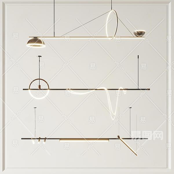 03轻奢吊灯现代长条吊灯su模型