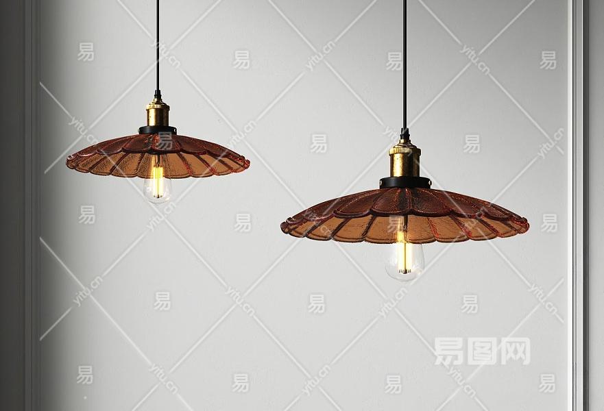 04现代美式复古金属玻璃茶色小吊灯SU模型