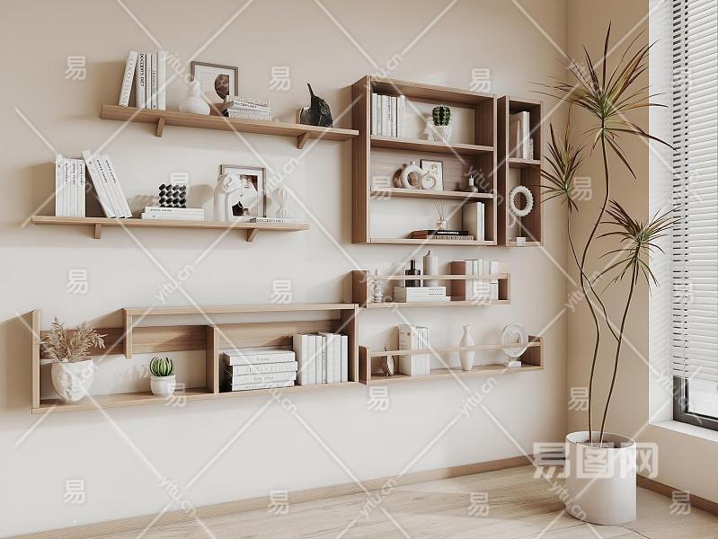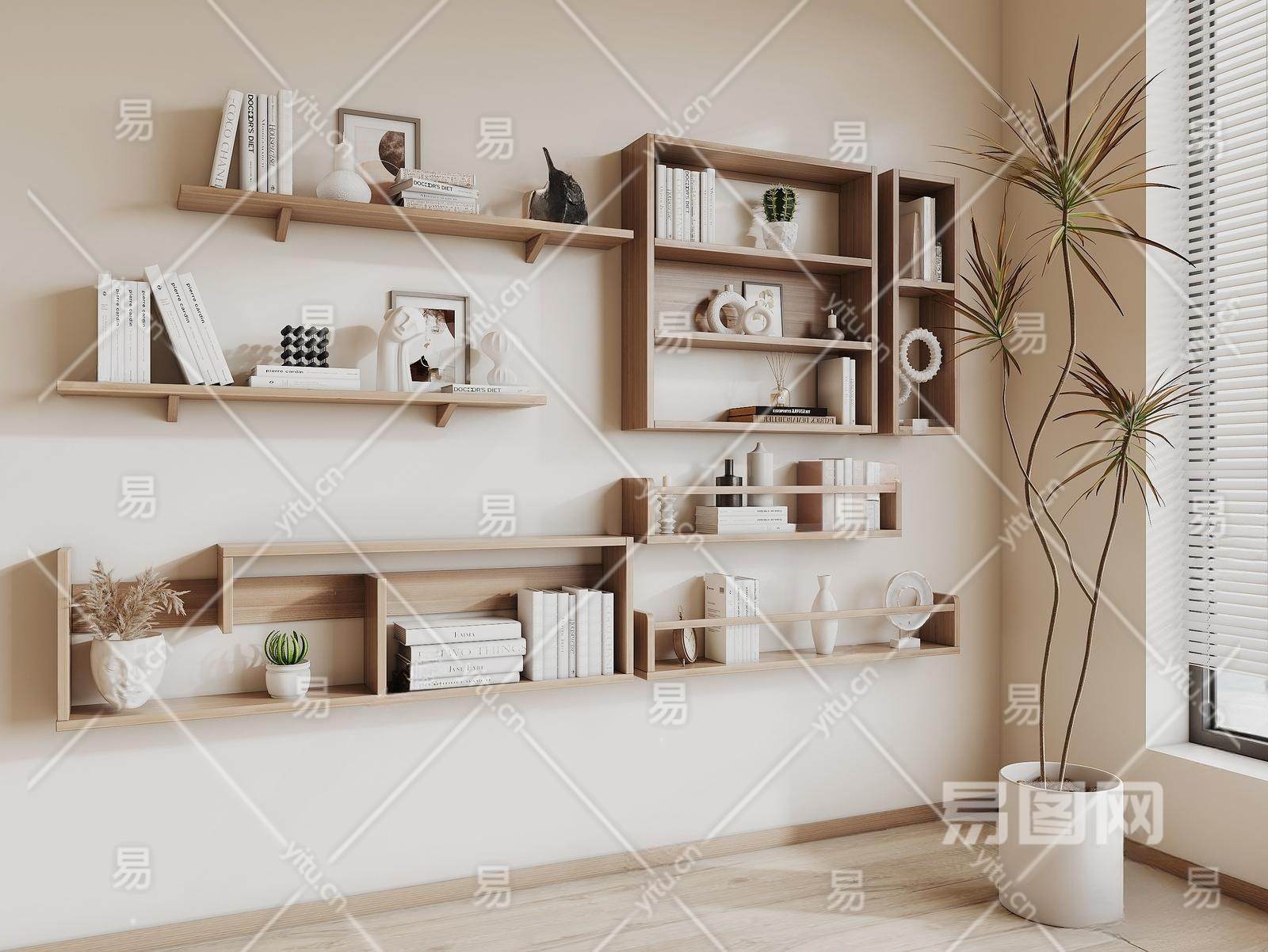 20北欧置物架,书籍,摆件,植物捧在SU模型