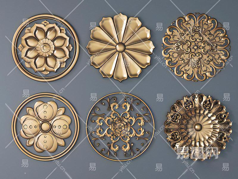 欧式金属轻奢圆盘雕花浮雕构件组合